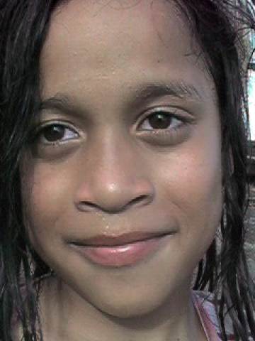 Young girl mothers her pox striken brother without complaint. Other household members are seen around her.